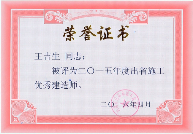 副總經理王吉生榮獲2015年度出省施工優(yōu)秀建造師稱號