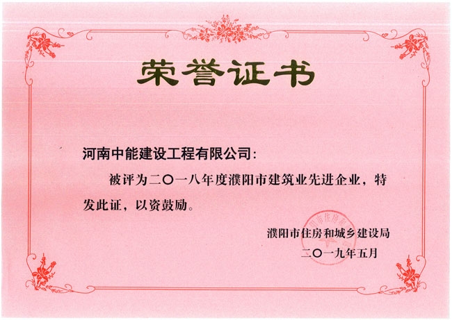 2018年度濮陽市建筑業(yè)先進企業(yè)