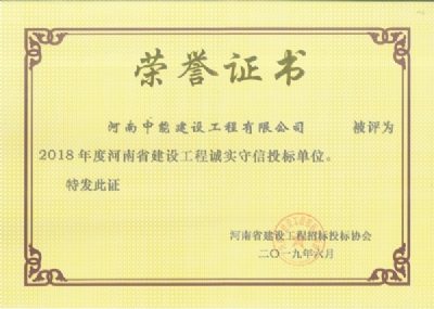 連續(xù)三年被河南省建設(shè)招標(biāo)投標(biāo)協(xié)會(huì)評(píng)為招投標(biāo)行業(yè)誠(chéng)實(shí)守信單位