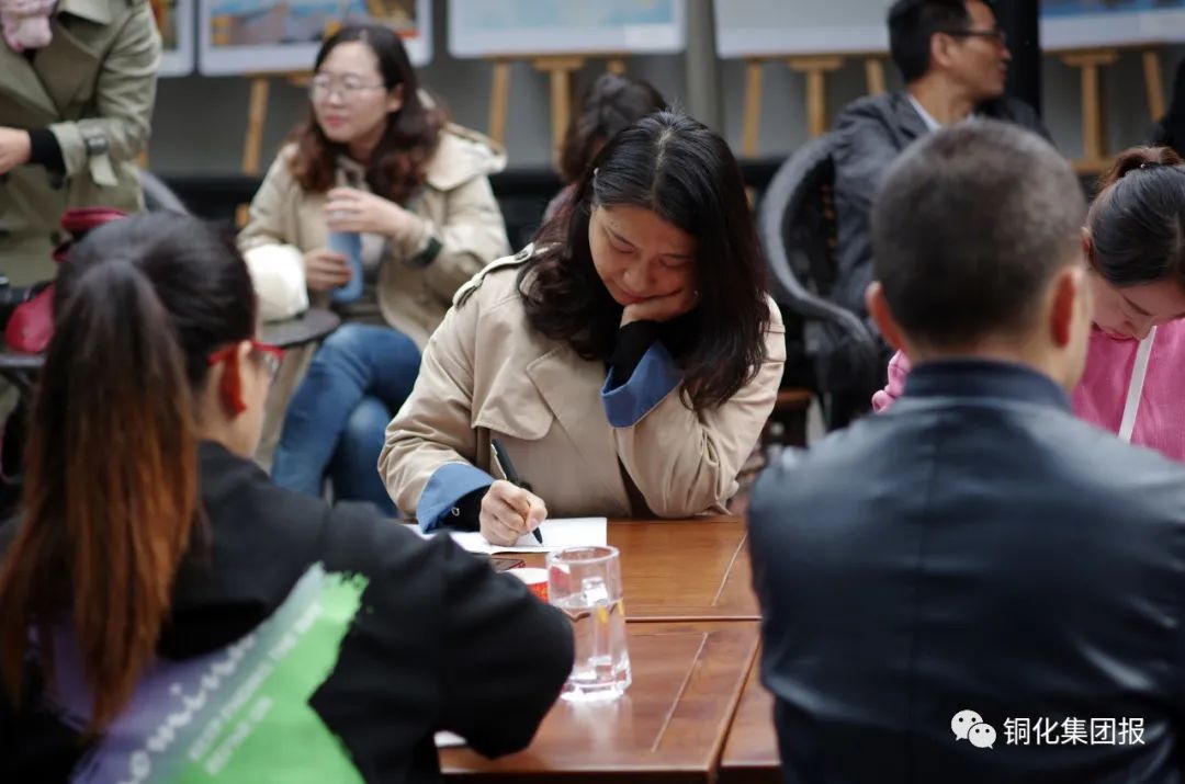 “好香啊,真是神仙處所!”“腦洞夠大呀,在這兒培訓(xùn)也是享受!”一進(jìn)門,通訊員們便被書院典雅秋色和濃郁桂香所吸引,就連《銅陵日?qǐng)?bào)》與《銅化集團(tuán)》報(bào)的4位老師也忍不住贊嘆:“花香伴書香,確是看書、學(xué)習(xí)的佳境!”幾張小桌拼湊在院里的桂花樹下,小方凳圍坐一圈,培訓(xùn)班正式開課。沒有電子屏,也沒有刻意準(zhǔn)備的課件,一縷花香,一杯清茶,拋開拘謹(jǐn),“師生”促膝圍坐,開啟了“嘮嗑”式培訓(xùn)。通訊員們把平時(shí)找新聞、寫新聞過程中遇到的困惑、難事拿出來發(fā)問求解,4位編輯老師也結(jié)合多年采、寫、編經(jīng)驗(yàn)和現(xiàn)實(shí)所遇事例盡心為大家答疑解惑,通訊員們之間還結(jié)合自己見報(bào)之作分享了各自心得。