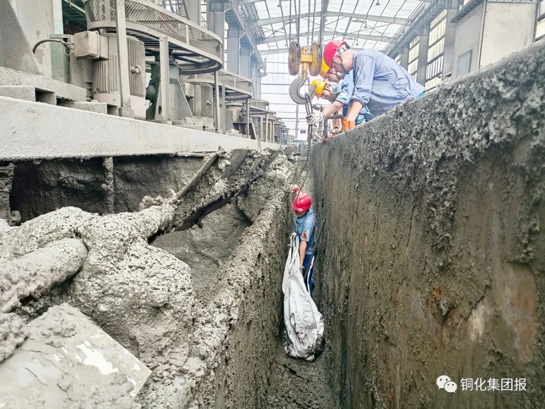 圖②:青年維修小隊(duì)正在清理浮選流槽。