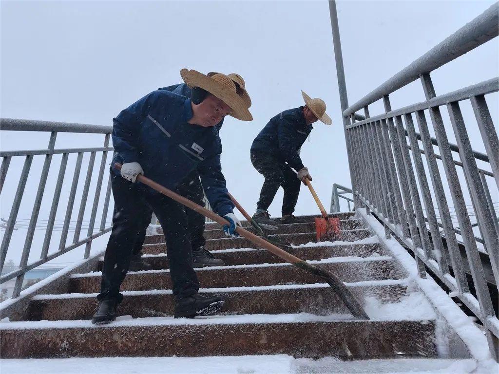 選礦廠、綜合保障部迅速組織員工清理廠區(qū)、天橋、露天臺階樓梯等處積雪,并鋪設(shè)防滑草包,保障員工出行安全。