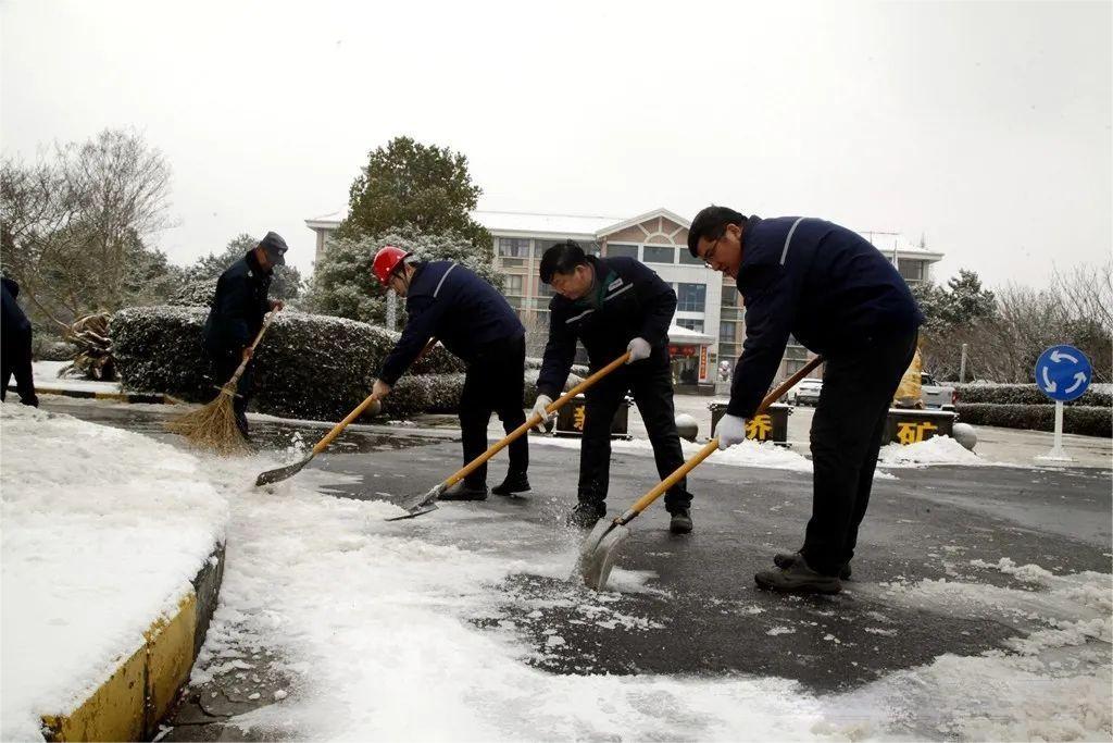 生產(chǎn)管理部組織員工清理辦公樓廣場積雪,確保進出員工、車輛安全通行。