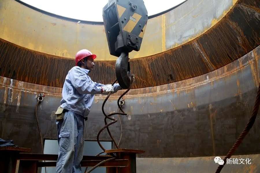 穿戴好勞保用品,系好保險(xiǎn)帶,“噔、噔、噔”爬上5米高的浮選機(jī)槽體底座。高臺(tái)作業(yè),電焊小組自動(dòng)升級(jí)成為“焊高組”。從早上8點(diǎn),幾名好“焊”就在高臺(tái)底座上沒下過地。今天是“東西翼礦石選礦技改工程”最為關(guān)鍵的一天——吊裝浮選機(jī)槽體,最小的槽體重達(dá)12砘,最大的更是超過20噸。起吊、安裝、調(diào)試難度大,還要考慮工期。要在最短的時(shí)間,高效、高質(zhì)量地完成上述工作——返工?絕對(duì)不允許?。?!