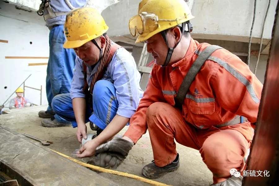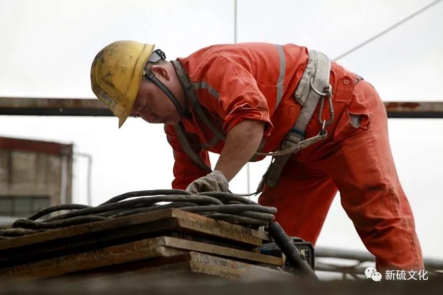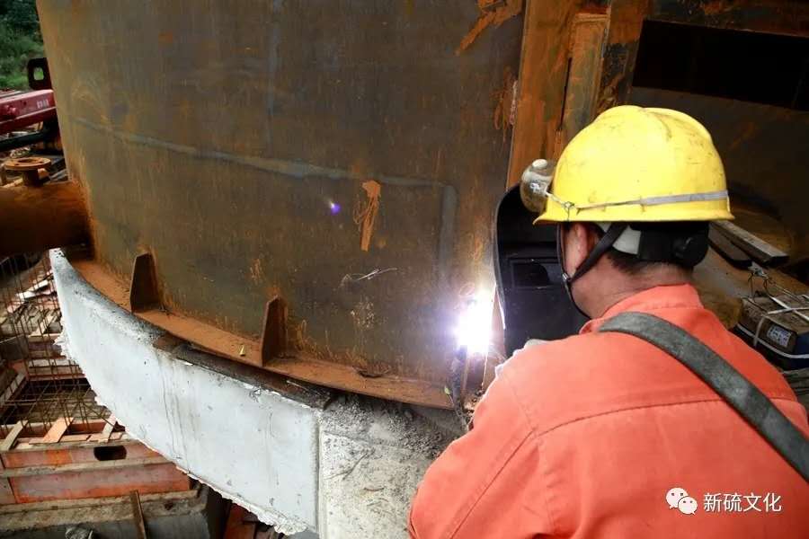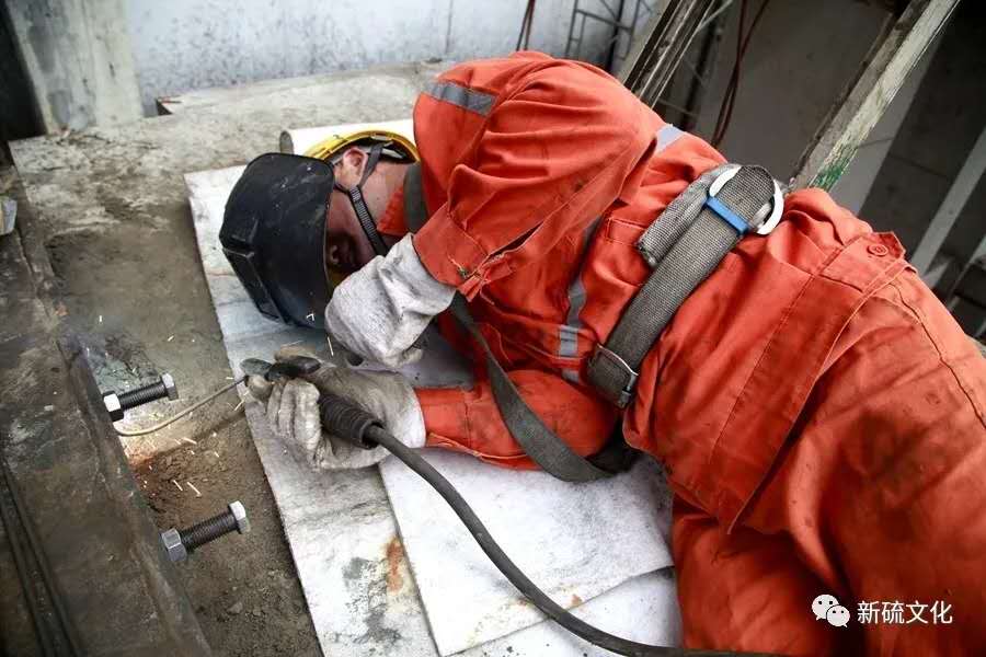 地面上大吊車、大貨車,選礦廠相關(guān)負(fù)責(zé)人、技術(shù)人員、安全員等忙著起吊龐然大物時(shí),“焊高組”在底座上也一刻沒閑著,拖運(yùn)電焊設(shè)備、準(zhǔn)備焊接材料、在底座上鋪水泥保持平面,各個(gè)槽體支腳找平衡......由于底座緊挨著磨浮車間,空氣不流通,加上天氣悶熱難擋,武裝整齊的好“焊”們一會(huì)就汗?jié)窳斯ぷ鞣?,汗珠順著安全帽壓著的發(fā)根往下滾。