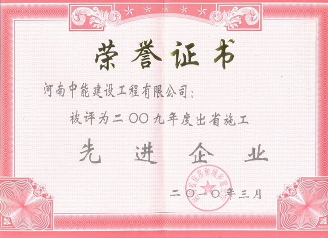 2009年度出省施工先進(jìn)企業(yè)