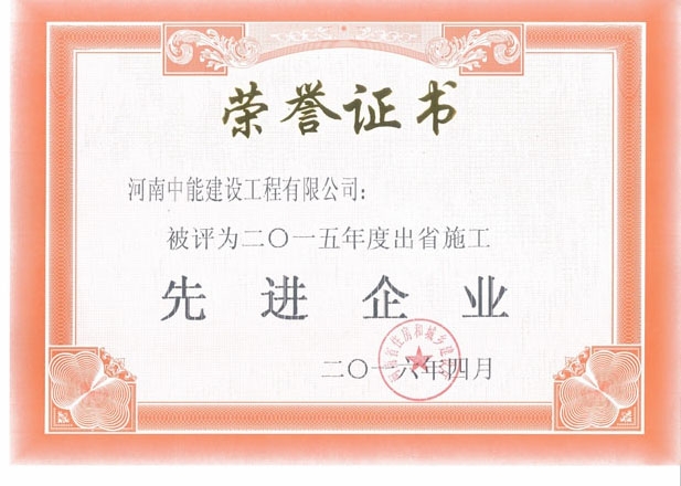 2015年度出省施工先進企業(yè)