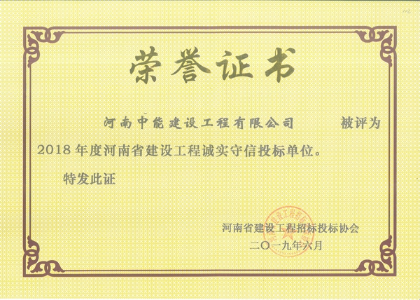 2019年度河南省建設(shè)工程招標投標行業(yè)誠實守信單位