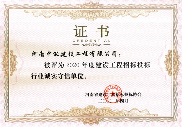河南省建設(shè)招標投標協(xié)會2018年度誠實守信投標單位